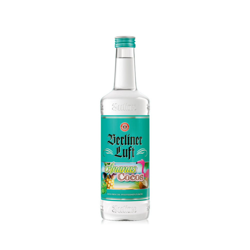 Berliner Luft Ananas Coco ist ein fruchtig-frischer Pfefferminzlikör mit exotischer Note, der Berliner Tradition mit sommerlichem Genuss verbindet. Auf Basis des klassischen Berliner Luft Pfefferminzlikörs überzeugt diese Variante durch das harmonische Zusammenspiel von kühler Minze, saftiger Ananas und cremiger Kokosnuss. In der Nase frisch und fruchtig, am Gaumen lebendig mit süss-exotischen Ananasnoten, feiner Kokoscreme und erfrischender Minze, der Abgang ist angenehm kühl und ausgewogen. Berliner Luft Ananas Coco wird gut gekühlt oder eiskalt serviert und eignet sich ideal als Shot, in Longdrinks oder kreativen Cocktails.